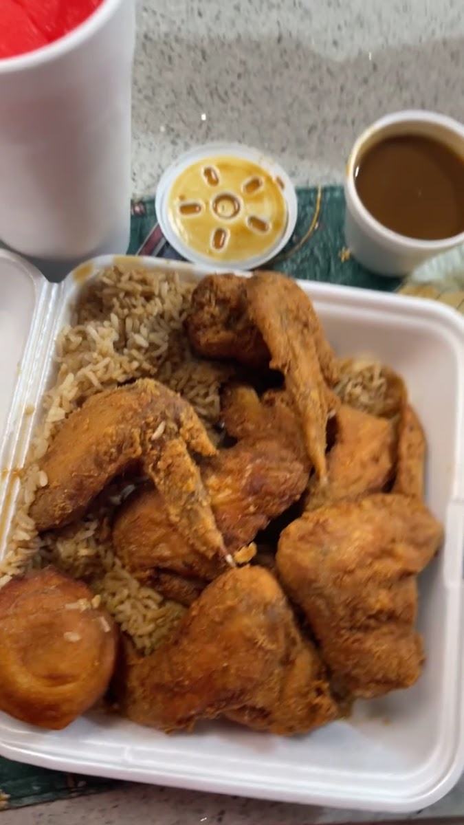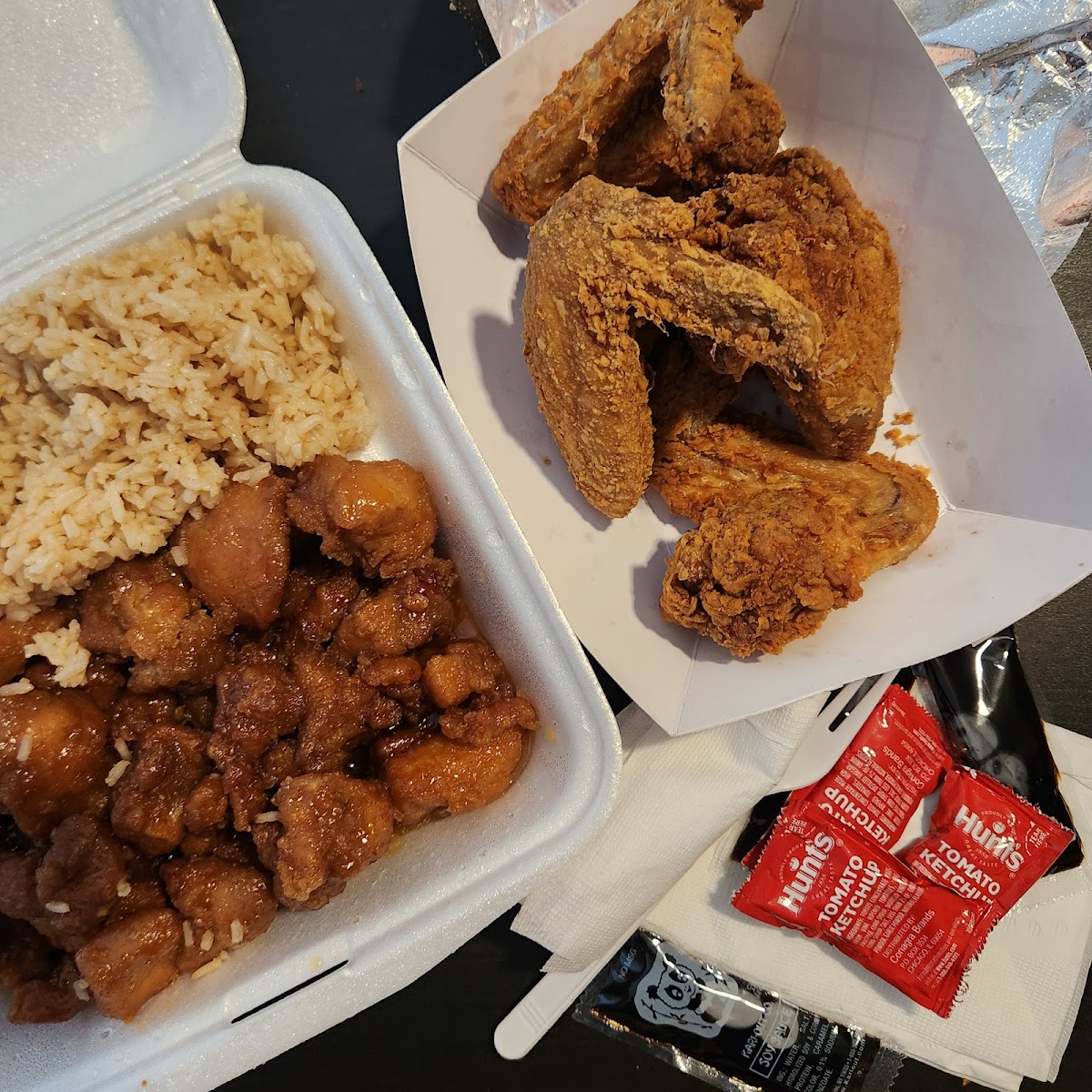 ⭐ Tried the rice combo with chicken wings it was really good! It had plenty of shrimp, chicken, and other meats mixed in, and the flavor was on point. The fried chicken wings on the side were crispy and fresh too. Overall, everything was delicious and definitely worth ordering again And check your orders before you leave because you don’t wanna wait in the drive-through it’s worth it but you don’t wanna come back and wait.
